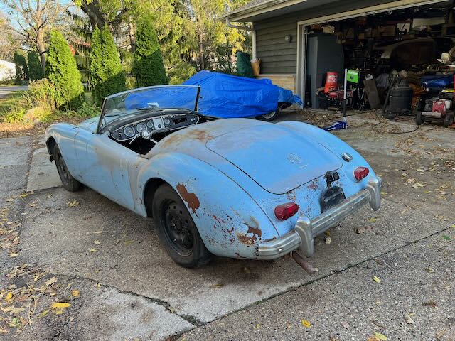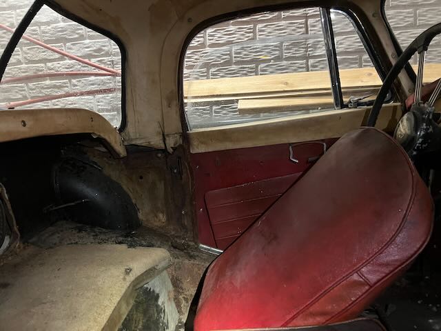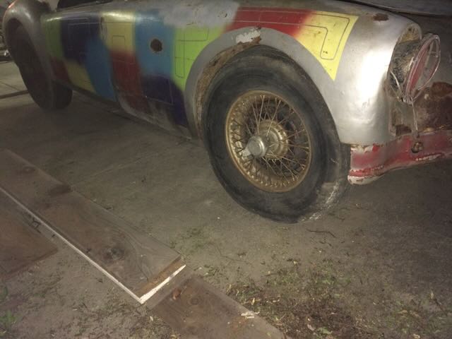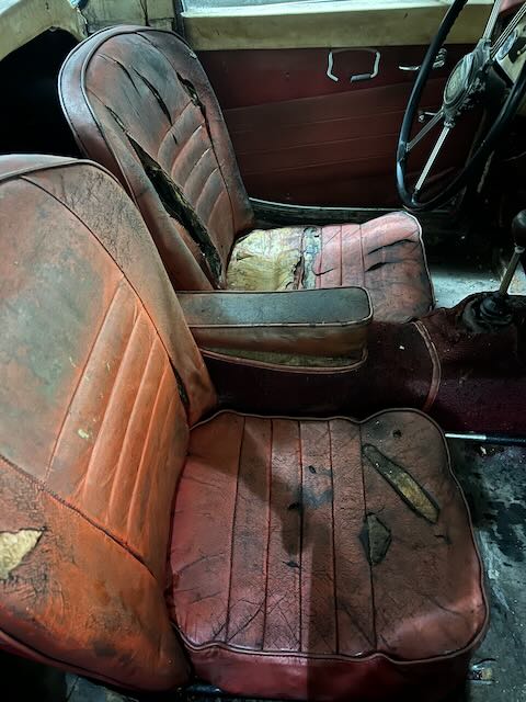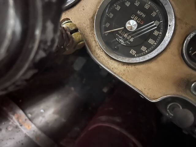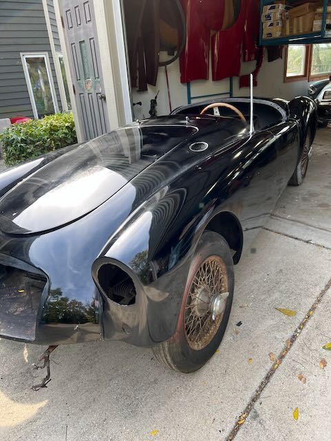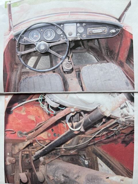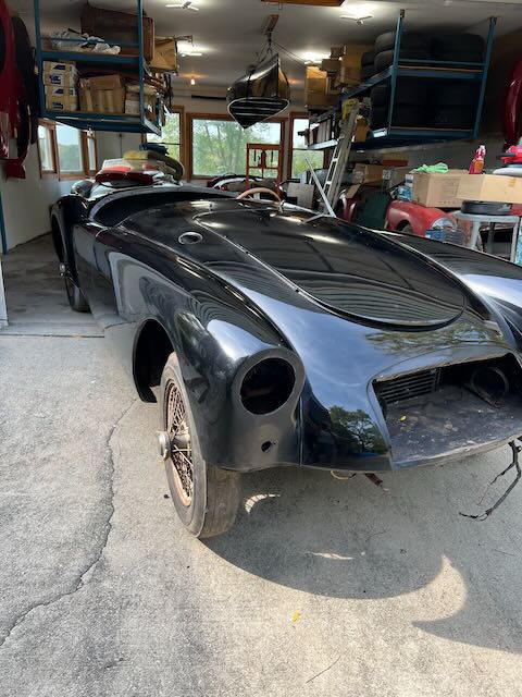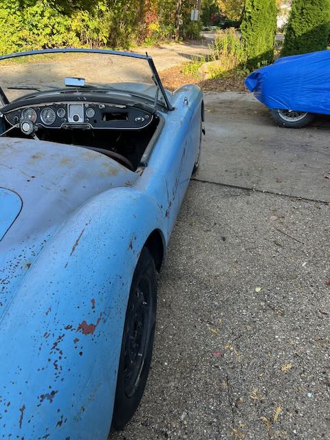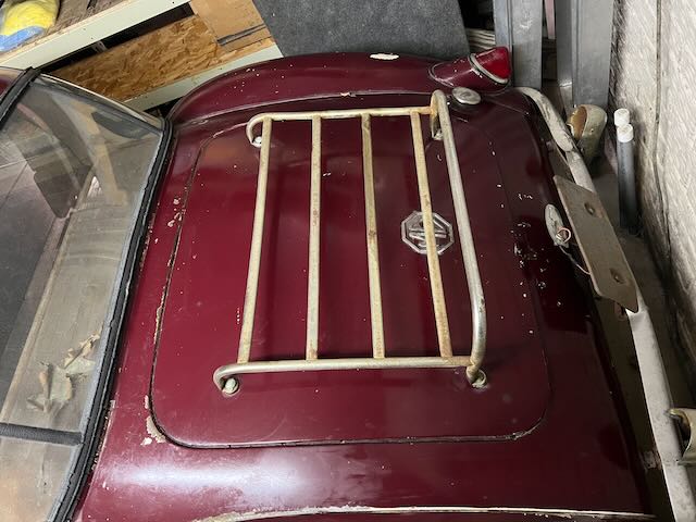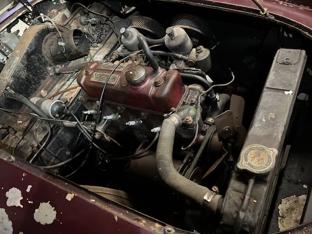 The car includes top frame but no top. The side curtains fit but appear to be from an MG TD therefore they do not fit in the storage compartment in the rear of the cockpit. The interior could us some TLC but is not in bad shape. To the best of my knowledge the only things that don’t work are the speedometer, wipers and the horn.