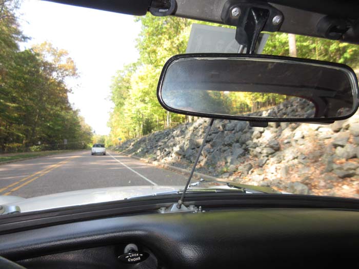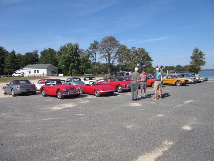 The pace was leisurely with 3 MG “T-cars” in the lead, a symbolic throwback to the 1972 founding of the club as exclusively for “T” owners. This slower pace allowed everyone to enjoy the great scenery on a beautiful day. The lead car’s driver placed his i-Phone atop the car back at the break stop, forgetting that it was sitting loose outside the car. After driving at the head of the pack for a couple of miles, a clunk was heard by the driver as the phone fell off the car to the pavement. The line of vehicles stopped; Bob Balderson spotted the phone across the road on the narrow shoulder…miraculously undamaged!! This year’s route was revamped in part due to construction of both Monches & Emerald Rds. The pavement had been pulled up, leaving a gravel surface: no good for cherished LBCs. The route map was revised 2 days in advance in order to note the altered tour.