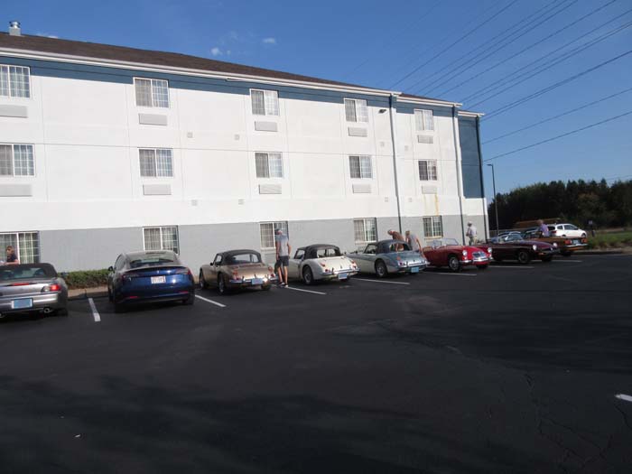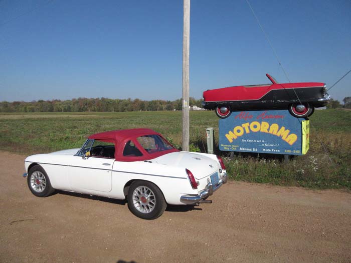 Saturday dawned with dew on the cars, to be toweled off for a free Mother nature’s car wash, followed by a hearty, complimentary breakfast featuring cheese omelette, sausages, plus much more, before heading out on tour. The featured destination was “AutoRama Car Museum”, again guided by the owner who once raced Alfa-Romeos (which dominate one building). Other buildings house a vast & varied collection: American, unique one-offs, British, French, Italian, Russian, and even an East German “Trabi”. The place is the world’s largest barn find! The Mad Brits brought along a catered lunch that we enjoyed right in the museum: what a thoughtful, generous, and great logistic effort! The Mad Brits certainly raised the bar!!